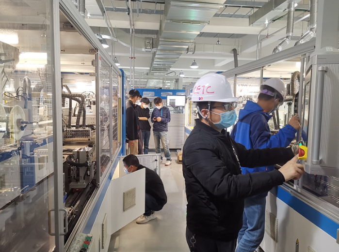 方案確定,馬上實(shí)施,毫不耽擱。團(tuán)隊(duì)與時(shí)間賽跑,直至攻破技術(shù)難關(guān),成功完成首臺(tái)串焊機(jī)二次配接線工作,雖然時(shí)間已是凌晨,但是每個(gè)人的臉上都寫著“值得”兩個(gè)字!一個(gè)可能導(dǎo)致項(xiàng)目嚴(yán)重滯后的問(wèn)題在24小時(shí)內(nèi)妥善解決,無(wú)不彰顯電科人走好科技自立自強(qiáng)之路的拼搏精神!